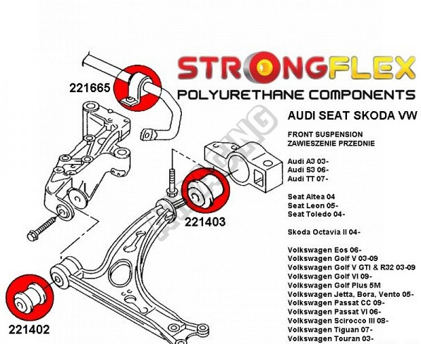 0recenzia produktuVW Eos Strongflex zostava silentblokov len pre prednú nápravu 6 ks