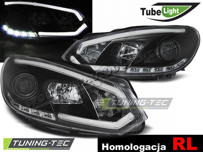 VW Golf 6 10.2008- predné číre svetlá LED Tube Lights black (LPVWI5) Svetlá majú homologáciu pre be
