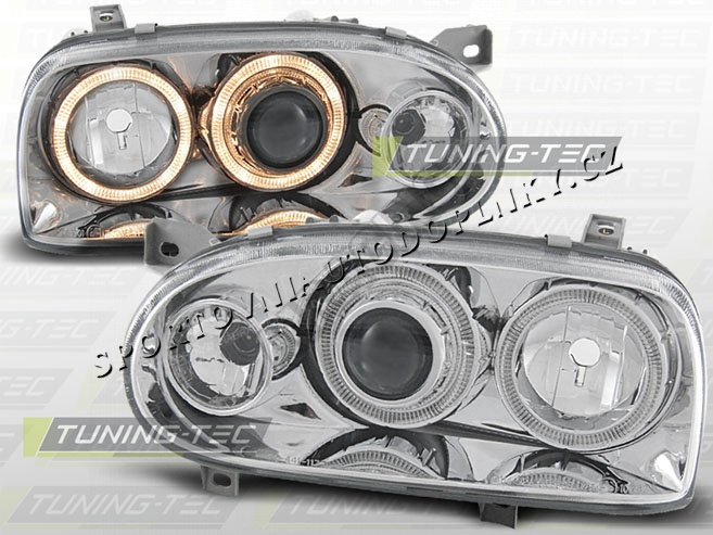 VW Golf III 1991-97 Predné číre svetlá Angel Eyes chrome (LPVW47) - cena za pár 2 ks, tyto světla ma