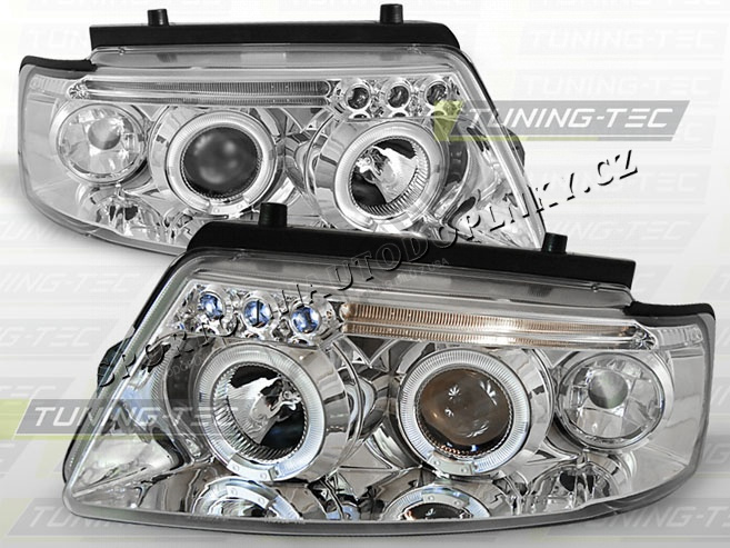 VW Passat B5 (3B) 1996-00 Predné číre svetlá Angel Eyes chrome (LPVW77) - cena za pár 2 ks, tyto svě