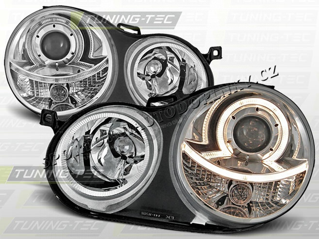 VW Polo 9N 2001-05 Predné číre svetlá Angel Eyes chrome (LPVW58) - cena za pár 2 ks, tyto světla maj