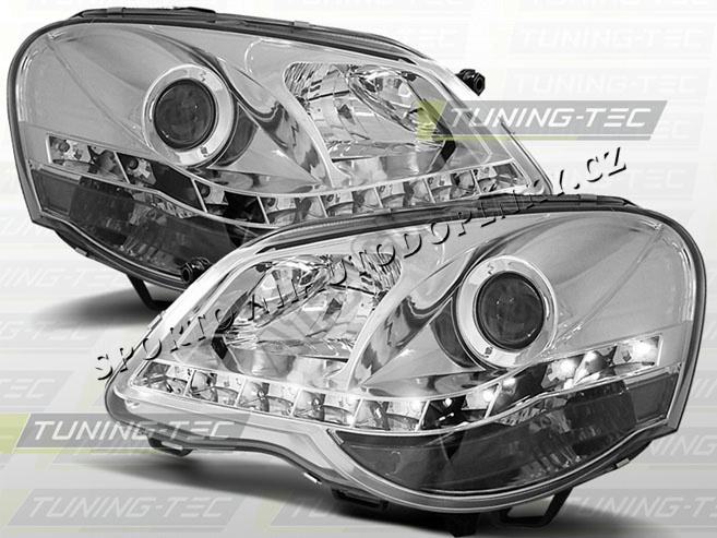 VW Polo 9N3 2005+ Predné číre svetlá Daylight LED chrome (LPVWA5) cena za pár 2 ks, tyto světla mají