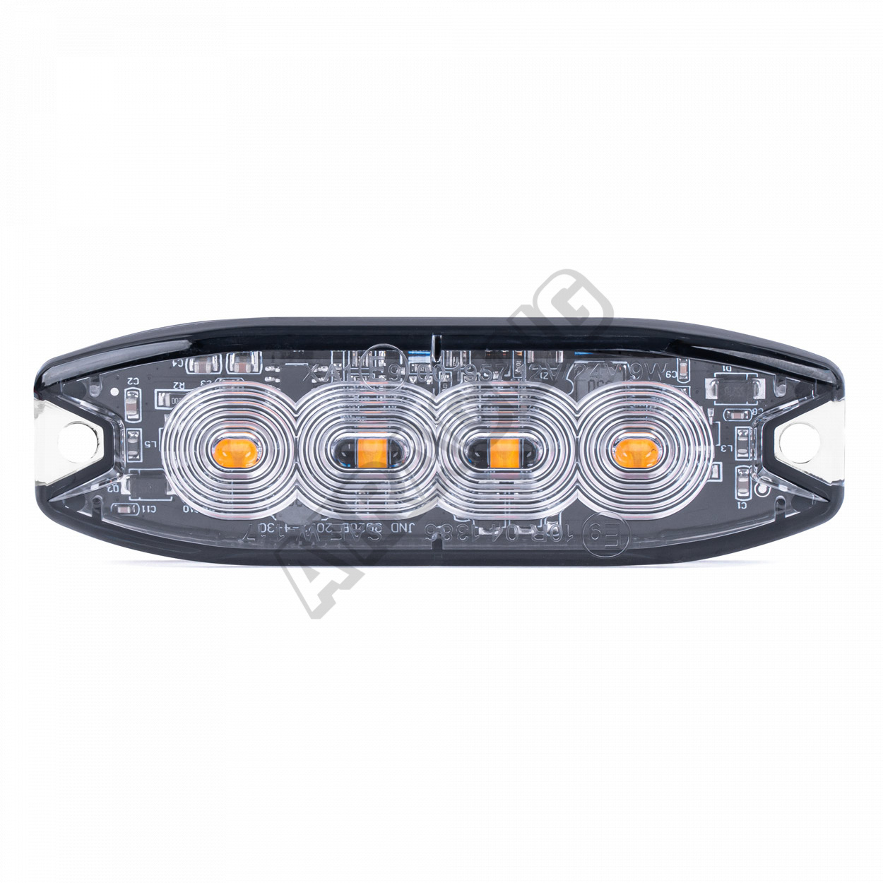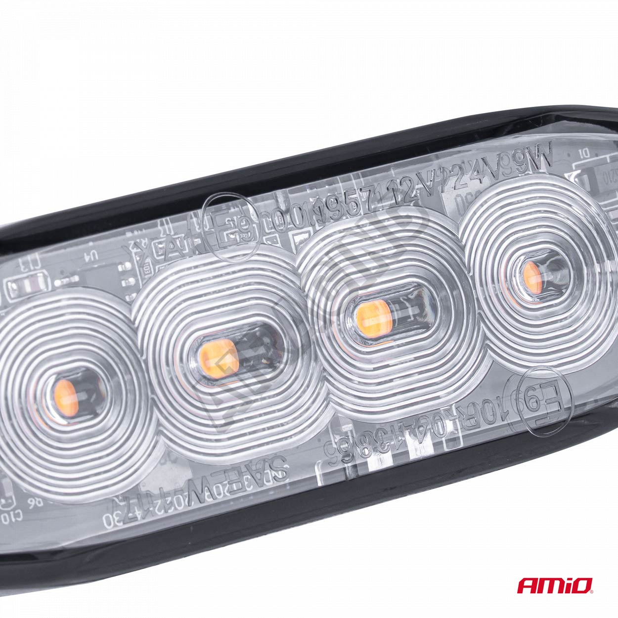 Kompaktná a výkonná výstražná LED lampa s plochou konštrukciou, navrhnutá s ohľadom na maximálnu viditeľnosť a spoľahlivosť. Vybavená 4 vysokovýkonnými LED diódami, poskytuje intenzívny svetelný signál spĺňajúci homologizačné normy R65 a R10. Pracuje v rozsahu napätia 12–24V, vďaka čomu je kompatibilná ako s osobnými, tak aj s nákladnými vozidlami.