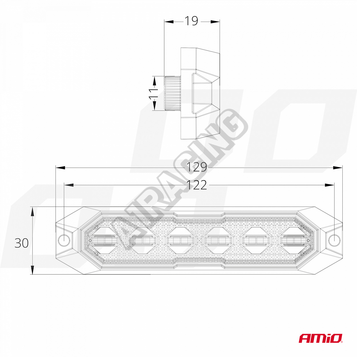 Výstražná záblesková lampa plochá 6x3W LED R65 R10 12V 24V AMIO-03930