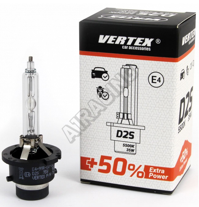 HID D2S + 50% POWER xenónové vlákno je rozhodne silnejšou verziou štandardného D2S vlákna. Vďaka novej technológii je vlákno až o 50% efektívnejšie (väčší jas a viac svetla na ceste) a jeho jedinečný dizajn zaručuje dlhú a stabilnú prevádzku. Vlákno určené pre originálne xenónové svetlomety, vyžadujúce žiarovky D2S (xenónové svetlomety s objektívom). Nevyžaduje žiadne úpravy inštalácie. Má ideálne nastavenú charakteristiku ohniskovej dĺžky a napätia pre žiarovku D2S. Možno použiť iba s xenónovým prevodníkom D2S alebo iným s adaptérom D2.