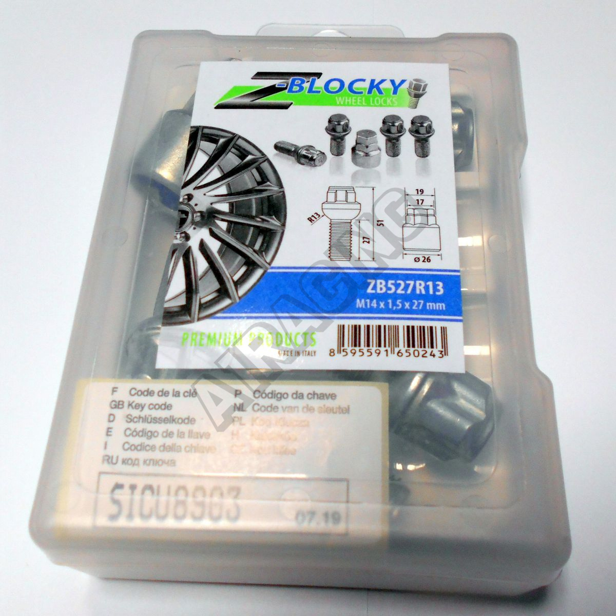 Z-BLOCKY poistné skrutky pre vozidlá ŠKODA a koncernové vozidlá VW GROUP M14x1,5 / 27 mm s uchytením do gule