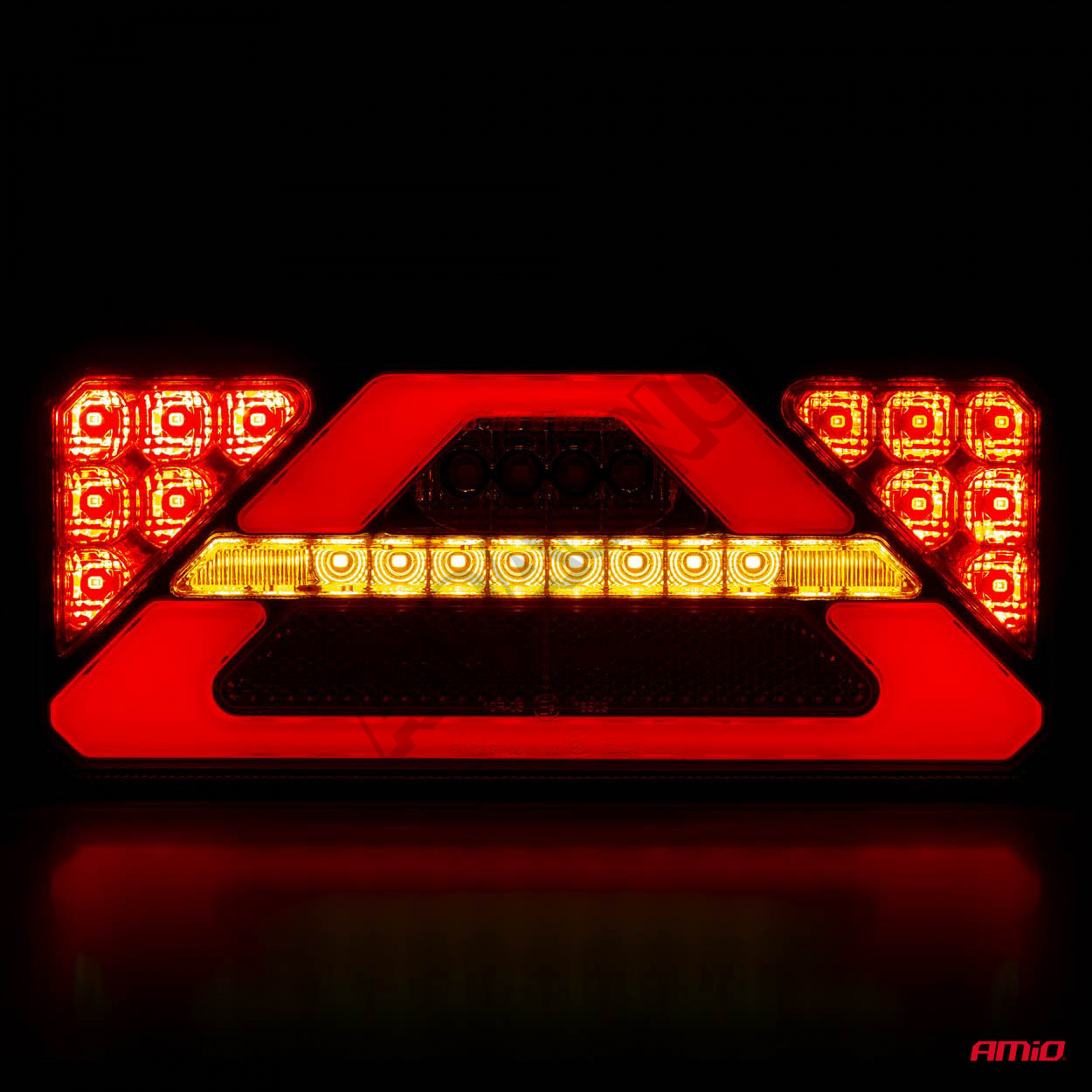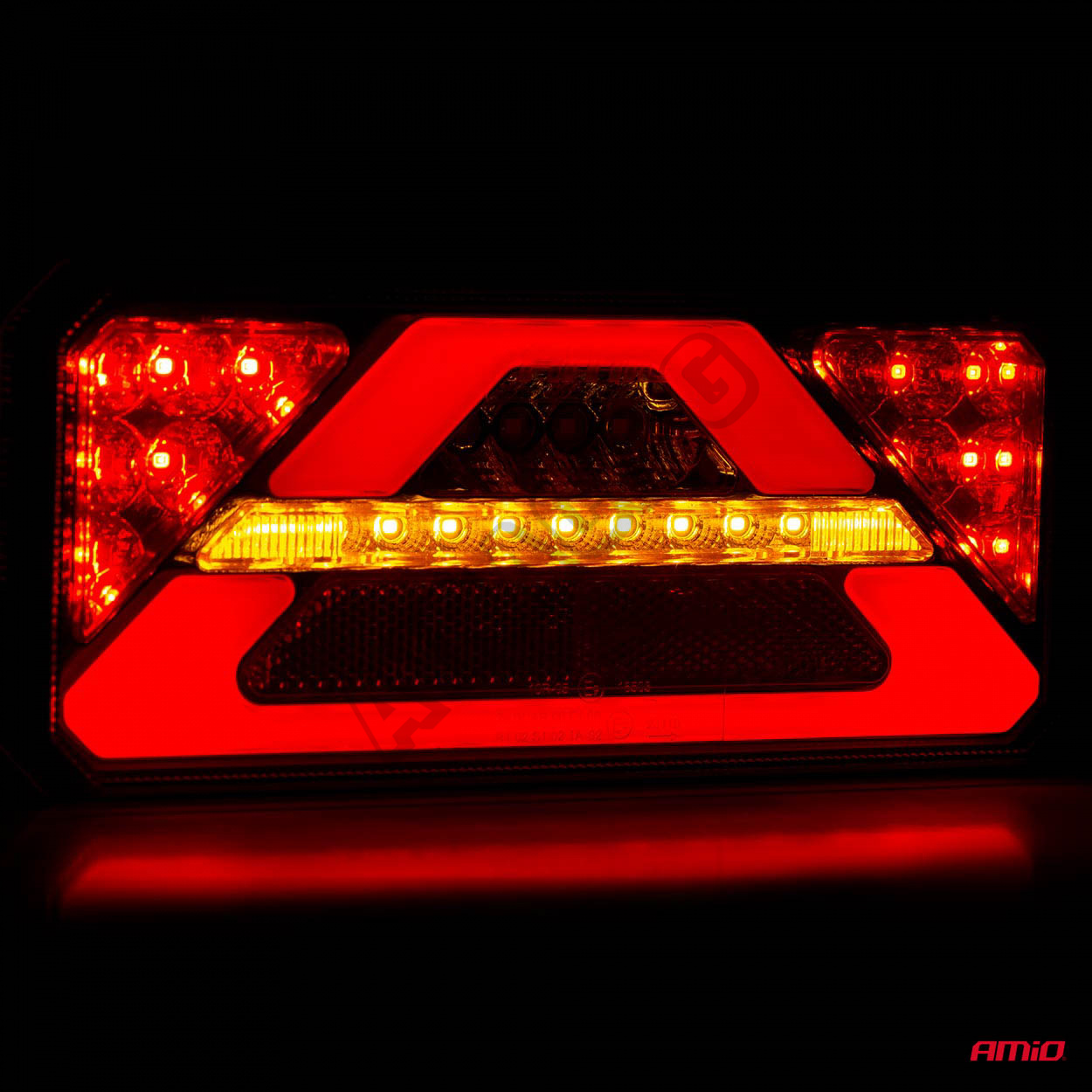 Dynamický smerový ukazovateľ je efekt putujúceho svetla smeru jazdy, v ktorom sa každá z diód rozsvieti s miernym oneskorením. Lampa môže pracovať v inštaláciách 12V aj 24V, má homologáciu elektromagnetickej kompatibility a stupeň krytia IP 67. Pravdepodobne je to najkrajšia lampa na trhu.