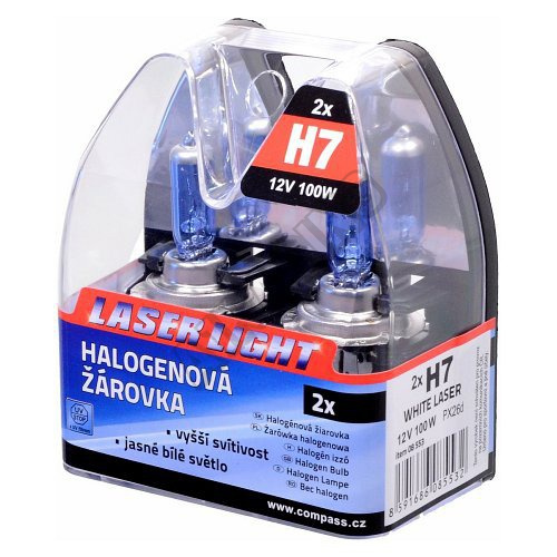 Žiarovka white laser H7 100 W Silnější varianta Halogenová žárovka, provedení WHITE LASER s modrým p