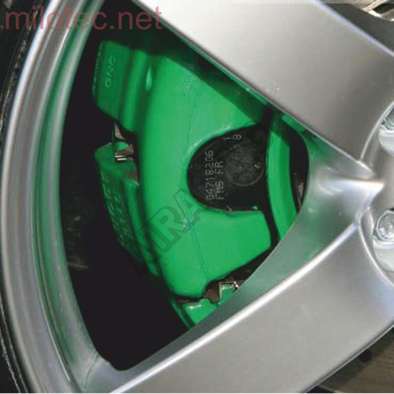 Zelená farba na brzdové strmene a bubny • sada objemovo vystačí na 4 brzdové čeľuste alebo • na 2 b