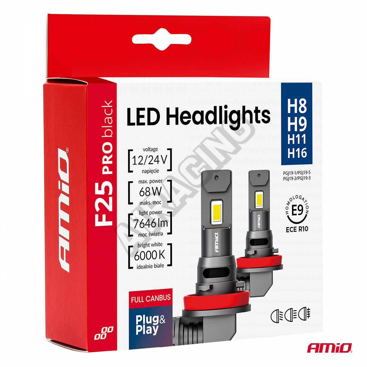 Žiarovky automobilové LED séria F25 PRO BLACK FULL CANBUS H8 H9 H11 H16 68W 12V 24V AMIO-04721