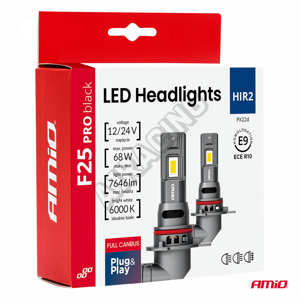 Žiarovky automobilové LED séria F25 PRO BLACK FULL CANBUS HIR2 68W 12V 24V AMIO-04724