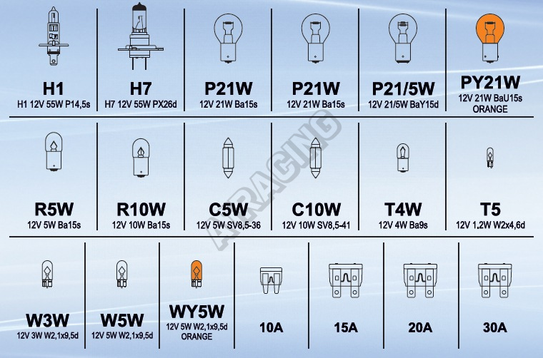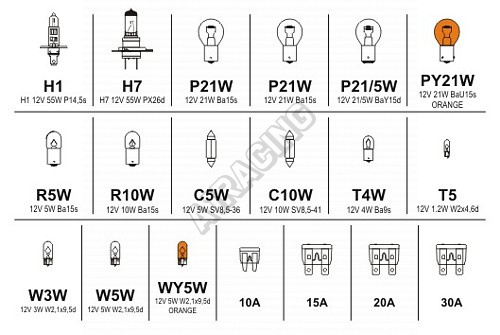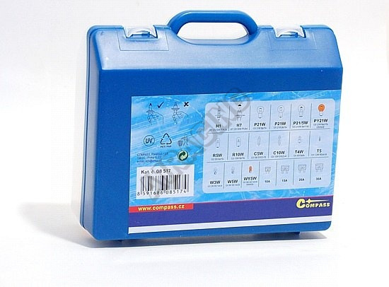 Uzatvárateľný kufrík so sadou náhradných žiaroviek 12V a poistiek, homologácia E.
