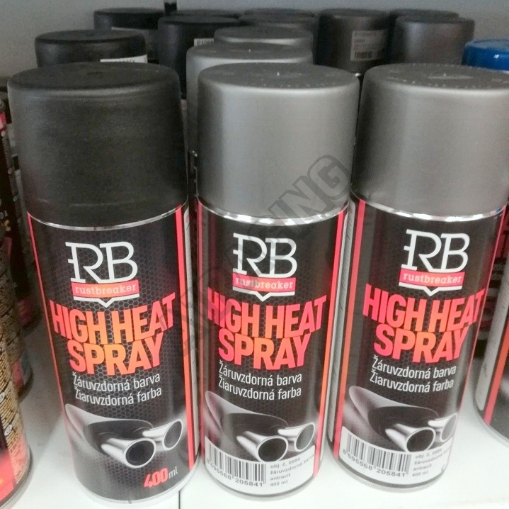 Žiaruvzdorná farba sprej RB 400 ml do 800 C strieborná (brzdy motor, výfuk) Kvalitná žiaruvzdorná f