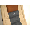 Pravý bok židle je doplněn o držák nápoje se sítěným dnem. Zádová část křesla je navíc opatřena bederní opěrkou, kterou lze nastavit pomocí popruhů na bocích.