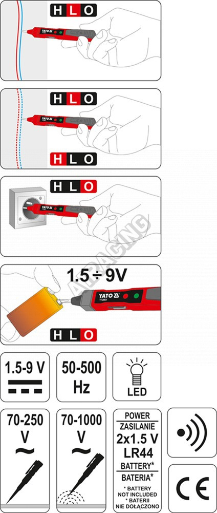 0recenzia produktuZkoušečka napětí 70-1000V ~, 1,5-9V =