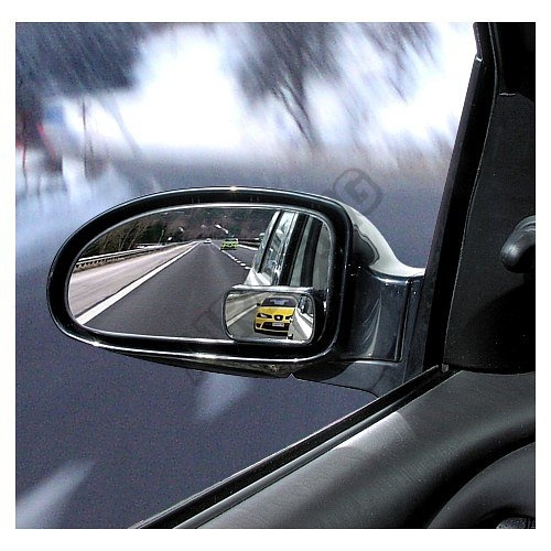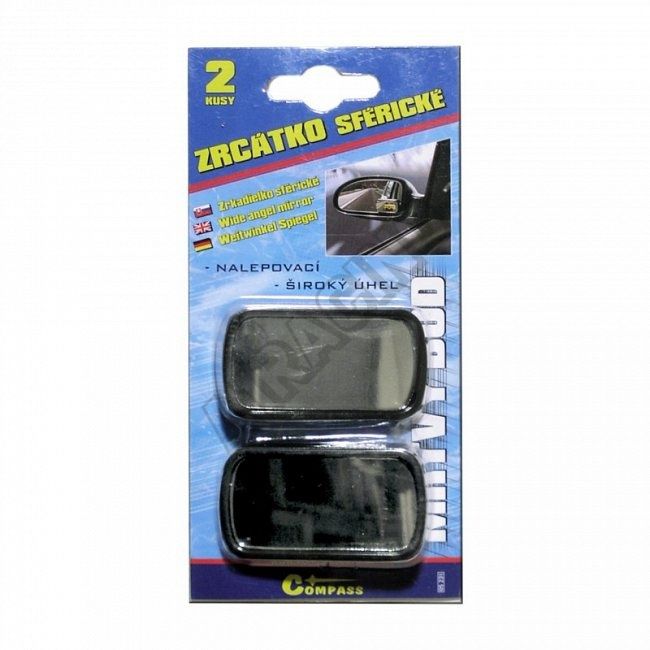 Hranaté doplnkové zrkadlo, určené na nalepenie na existujúce vonkajšie spätné zrkadlo. Zmenšuje tzv. mŕtvy bod v spätnom zrkadle. Súprava 2 kusy.